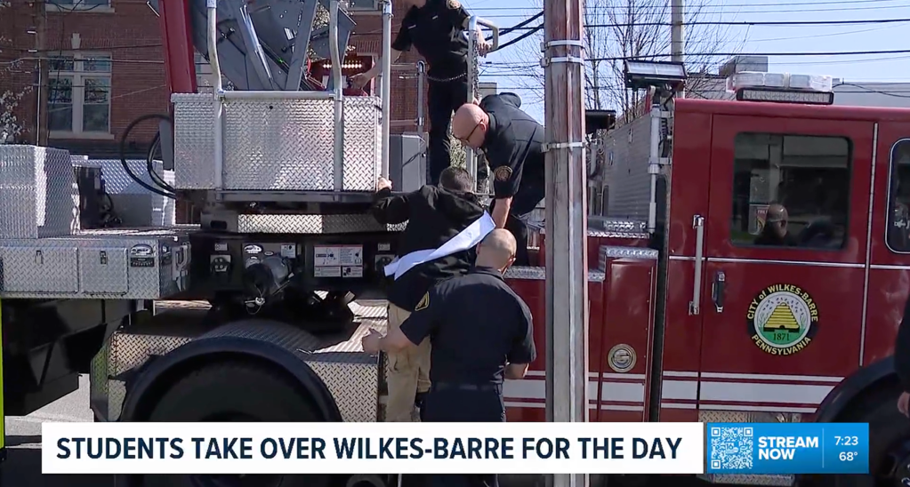 WNEP-TV destacó cómo los alumnos asumieron funciones de liderazgo reales, como las de alcalde, jefe de bomberos y jefe de policía durante ese día.