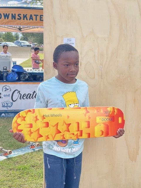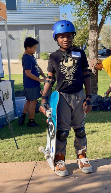 Behrent researched opportunities and found Cowtown S.K.A.T.E., a nonprofit supported by the City of Phoenix Parks and Recreation Department that advocates for accessible skateboarding. Preston joined the weekly program and immediately embraced the challenge. The instructors helped him grow both his confidence and skills, and even provided guidance from the program’s graphic designer when Preston wanted to design his own skateboard.