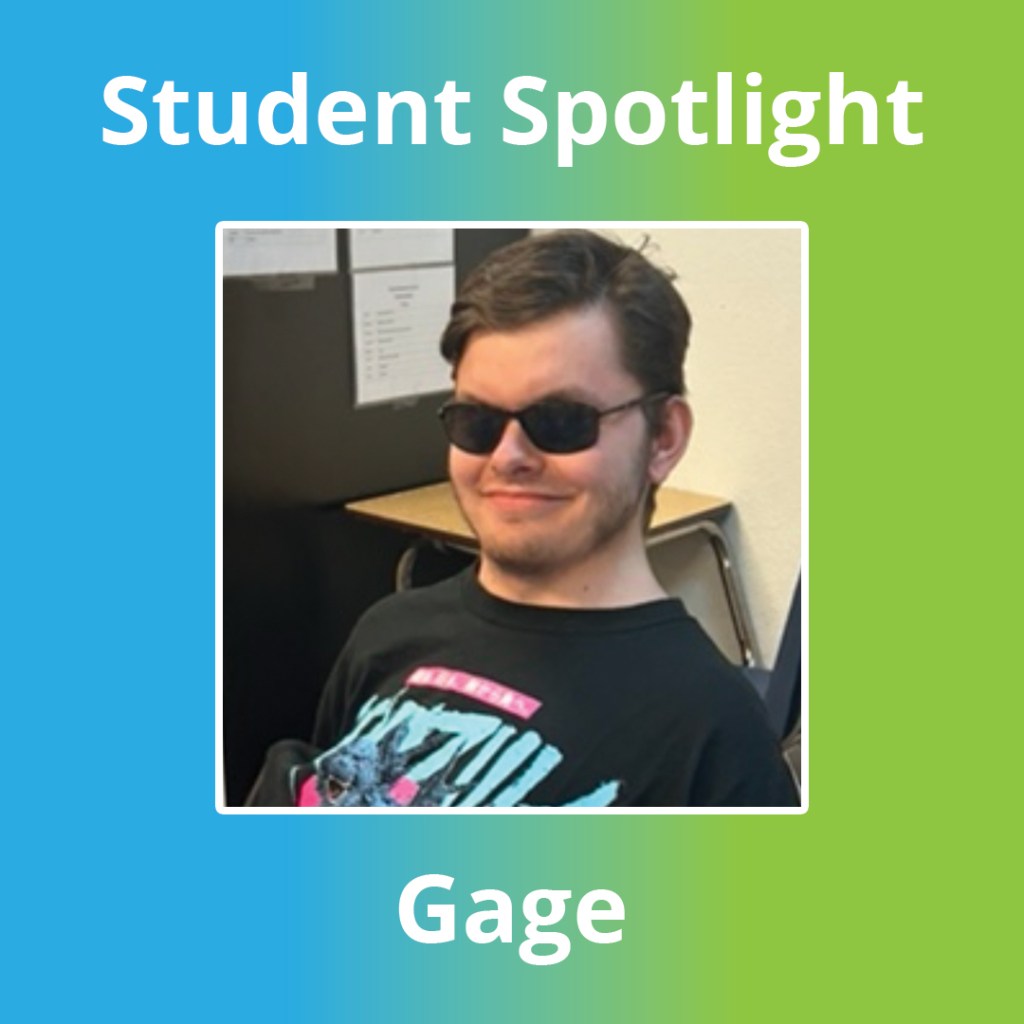 Gage approaches each school day ready to learn. He jumps right into his morning job and takes pride in starting the day with purpose and focus. Even in his final year, Gage has remained motivated and engaged. He has not allowed senioritis to take over and continues to show interest in learning skills that will support his adult life.